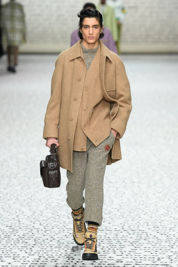 Hver høstsesong har fokus på jordfarger i en eller annen grad. Høsten 22/23 er intet unntak. Bærekraft står stadig mer sentralt for hver sesong, og denne gangen er det særlig resirkulert ull, bomull og polyester som blir brukt, ifølge Fashion United. Disse blir brukt både på utsiden av klærne og som fyll i eksempelvis cruelty free jakker, istedenfor naturlig gåsefjær. Fargene strekker seg fra velkjente jordtoner som lys brunt og beige til grønt, ikke så ulikt Artsy Craftsy. Sentrale nøkkeplagg er den lange frakken og korte strikkegensere.