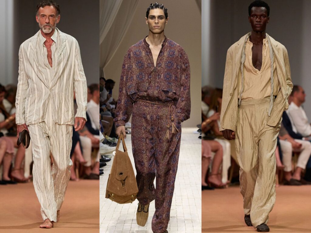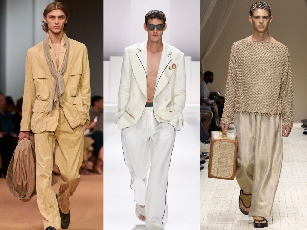 Lin og silke er materialer som både puster, er komfortable og gir den rette avslappede luksusfølelsen. Buksene skal gjerne ha brede linninger og vide ben. Skjortene en løsere form enn tidligere sesonger. Og den dobbeltspente jakken holder seg i trendbildet, gjerne med mindre stramme skuldre og et litt mer «vintage» utseende.