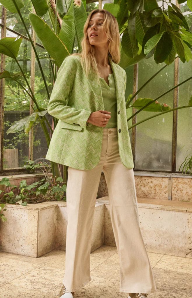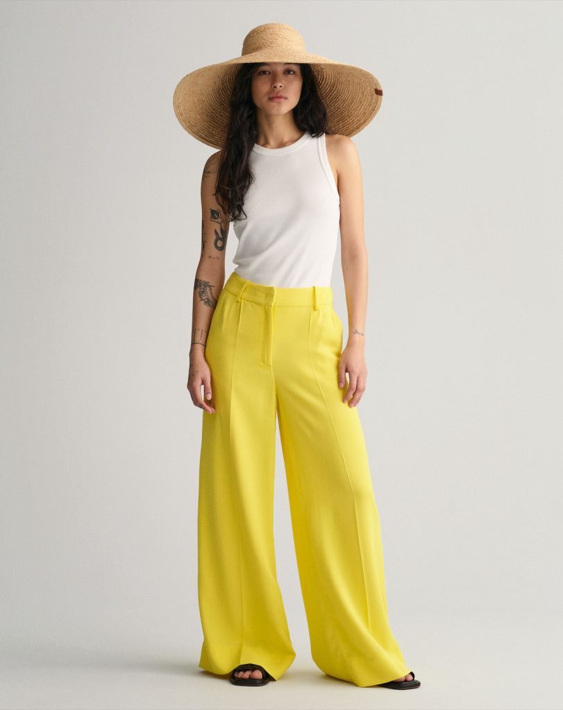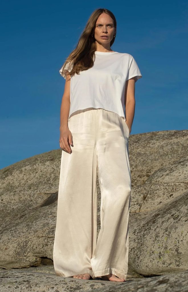 – For et feminint og slankere uttrykk, er et godt tips å velge bukser i rett eller vid fasong. De bør være i balanse med hoftene, slik at de virker forlengende, sier hun.