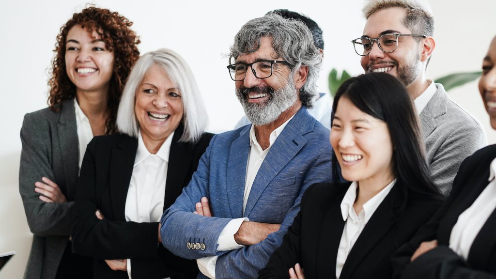 Business people having fun inside office – Entrepreneur and brainstorming concept – Focus on man with grey hair