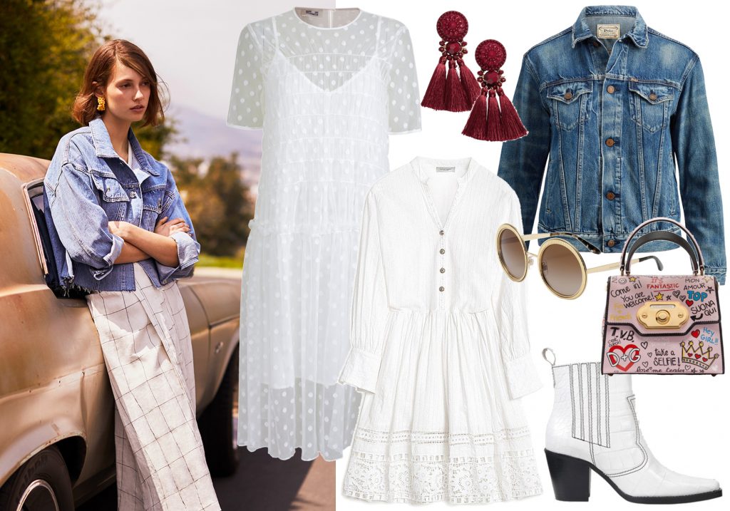 Sommerkjoler: Illustrasjonsbilde fra Mango. Lang kjole fra Baum und Pferdgarten, kort kjole fra Hunkydory, denimjakke fra Ralph Lauren, ørepynt fra H&M, solbriller fra Dolce & Gabbana, veske fra Dolce & Gabbana, cowboyboots fra Ganni. Foto: Produsentene.