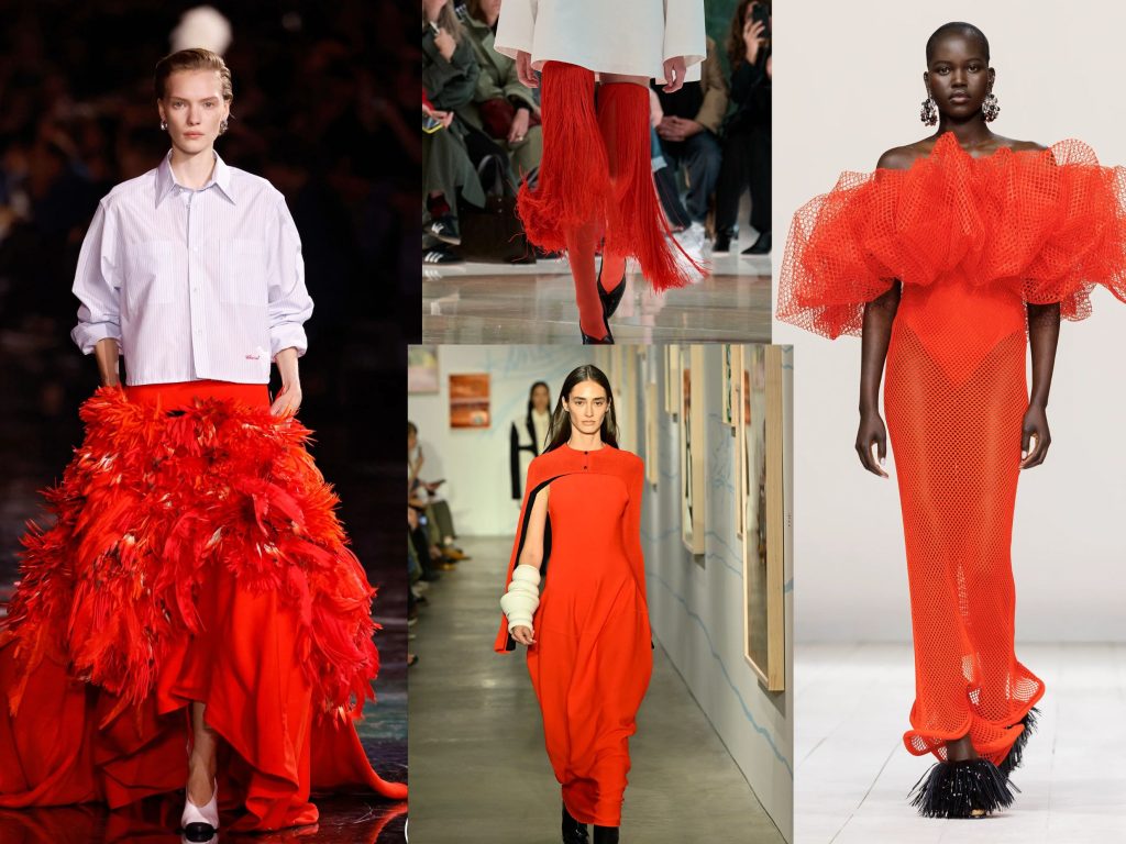 Matthieu Blazys debutkolleksjon for Chanel satt bokstavelig talt fyr på Internet med sine fjærprydede massive skjørt, kunstferdige brosjer og dramatisk dinglende ørepynt. Alt i flammende rødt, og parret med crispe hvite skjorter og sobre, klassiske drakter. En del klassisk Coco. En del frisk, ny vind. Og moteverdenen var solgt og klappet fornøyd. Store skjørt, gjennomskinnelige kjoler og smykker og vesker i rødt er en kraftfull måte å sette en spiss på vårens lyse nøytraler.