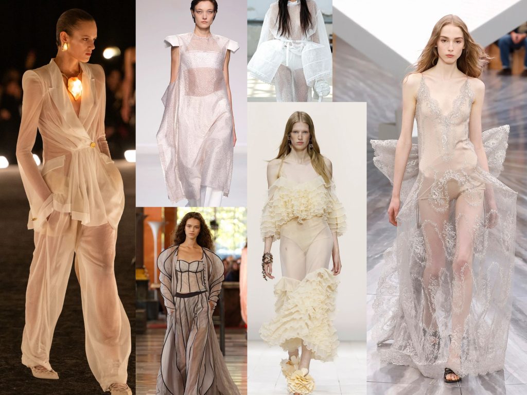 Som flagrende lysglimt var det de ultralette, gjennomskinnelige stoffene som virkelig lyste opp catwalken i Milano og Paris denne sesongen. Volanger, rysjer, vide bukser og kjoler med flommende kapper fikk alle følge av tekstiler som best kan beskrives som «såvidt tilstede». Den nærmest nakne huden maskeres med rysjer og blonder, og gir et drømmeliknende spill med lys, figur og former. Trenden med gjennomskinnelige materialer enten på topper eller bukser og skjørt, med synlige truser og bh-er, er noe som kommer til å fortsette å prege motebildet denne sommeren.