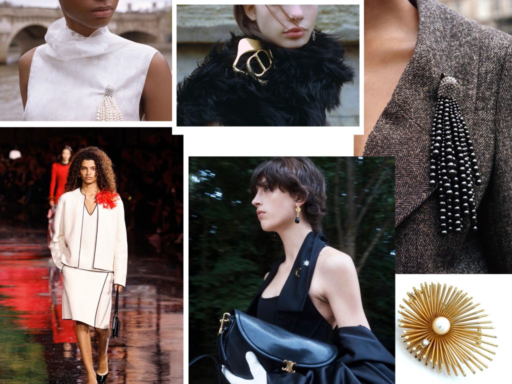 Denne trenden boblet opp allerede i fjor sommer. På stadig flere it-girls, i editorials og på catwalken var smykker fra bestemors glanstid tilbake i spotlyset. Og smykket som blinker aller sterkest, var de kunstferdige brosjene. I vår har brosjer og nåler for alvor tatt tilbake sin fortids stjernestatus, og utvalget er stort. Du finner de dekorert med perler eller edelstener, i blankt og massivt metall, snirklende og smått, eller massivt og tungt. Brosjene pryder yttertøy og kjolekanter, hattebremmer og halterneck-topper.