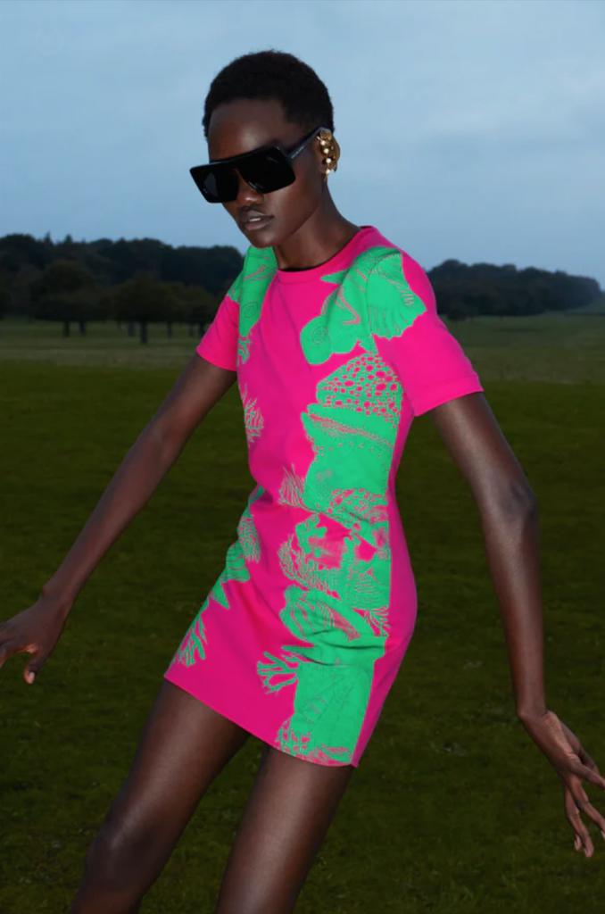 Nå skal koronauniformen, med behagelig loungewear og pysj, erstattes med festlige klær som skriker av farger og glede, og gjerne grafiske, helsprø mønstre. Trenden bygger en bro mellom den fysiske og digitale verdenen med digitalt design og 3D-printing av tekstiler, slik som nylon, spandex, rayon, denim og resirkulerte materialer.
