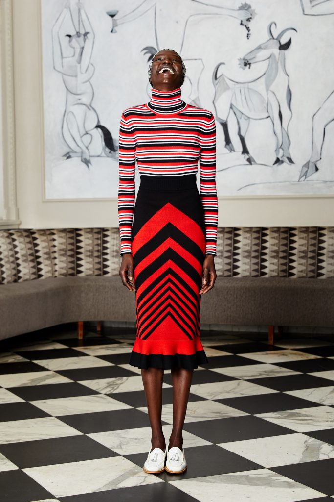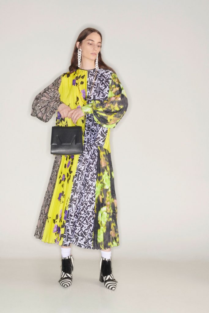 Proenza Schouler sin Pre-Fall 2019-kolleksjon består blant annet av 80-tallets forkjærlighet for sterke og kontrastfylte fargekombinasjoner, som gult mot sort for en stopp-effekt på gaten. Lange kjoler og skjørt dekoreres med store grafiske mønstre som ruter og striper. Det hele kjennes moderne, retro og sporty på samme tid.