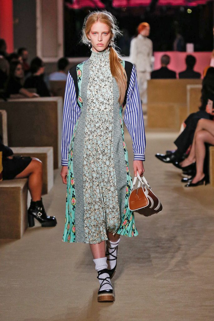 Prada sin Cruise 2020-kolleksjon heller mer mot den avslappede, løse og nonchalante siden ved denne trenden, enn det sporty. Lange, sleeke silhuetter i form av skjorter, skjørt og kjoler preger denne kolleksjonen, i tillegg til mønstermania. Her kombineres vertikale striper med ruter, blomster og organiske, snirklete mønstre. De lange midi- og maksikjolene er gjerne dekorert med paneler av ulike mønstre.