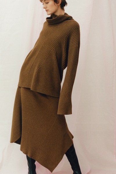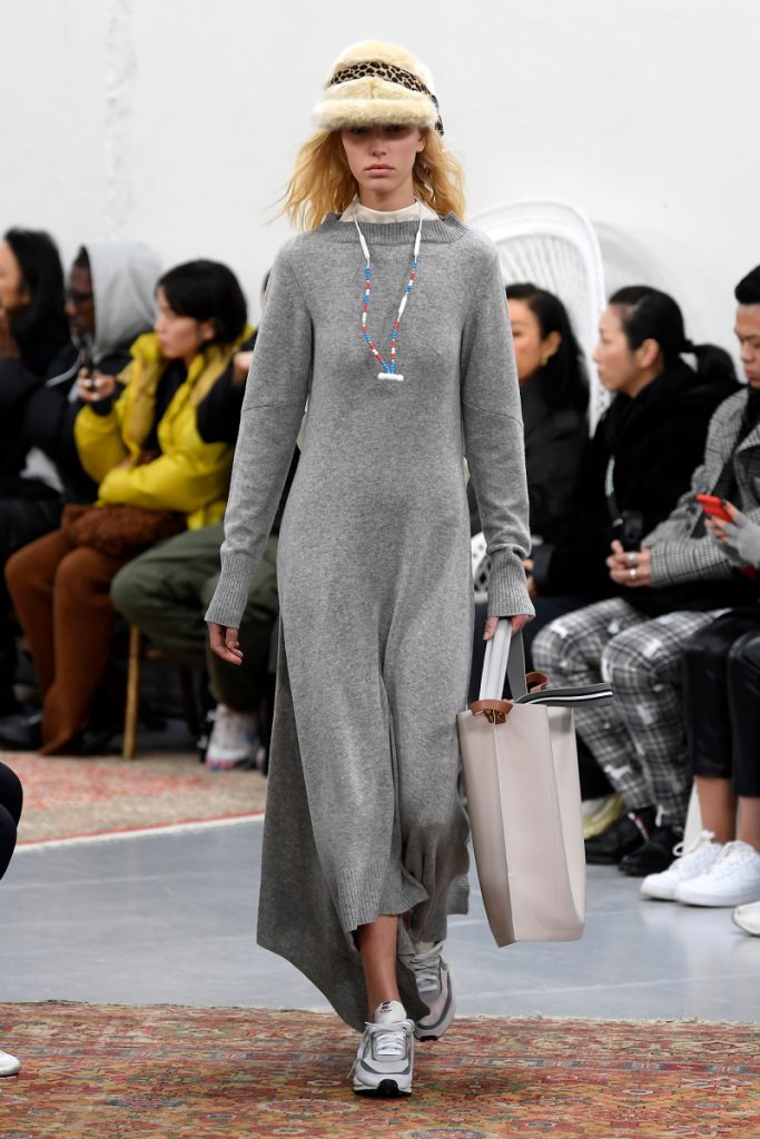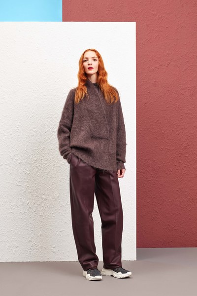 Agnona sin støvete fargepalett passer perfekt inn i den avslappede tendensen. Store kåper, lange skjørt og oversizede gensere er med på å skape ro. Beige, brune og lyse plommefarger, som alle er stylet ton-i-ton, gjør kolleksjonen stilren og perfekt for en time out.
