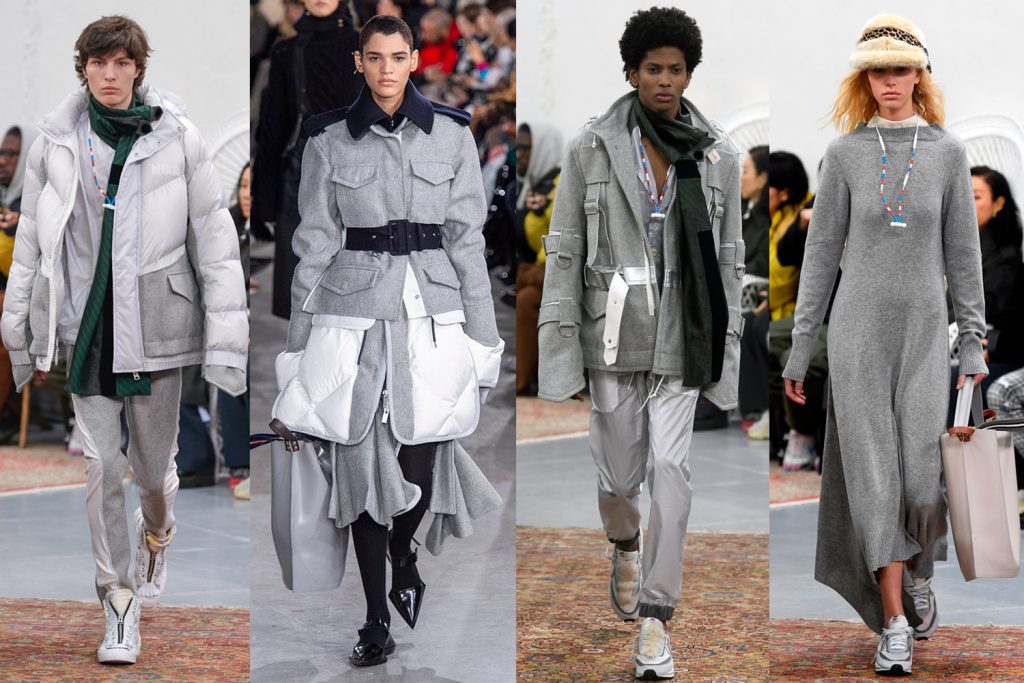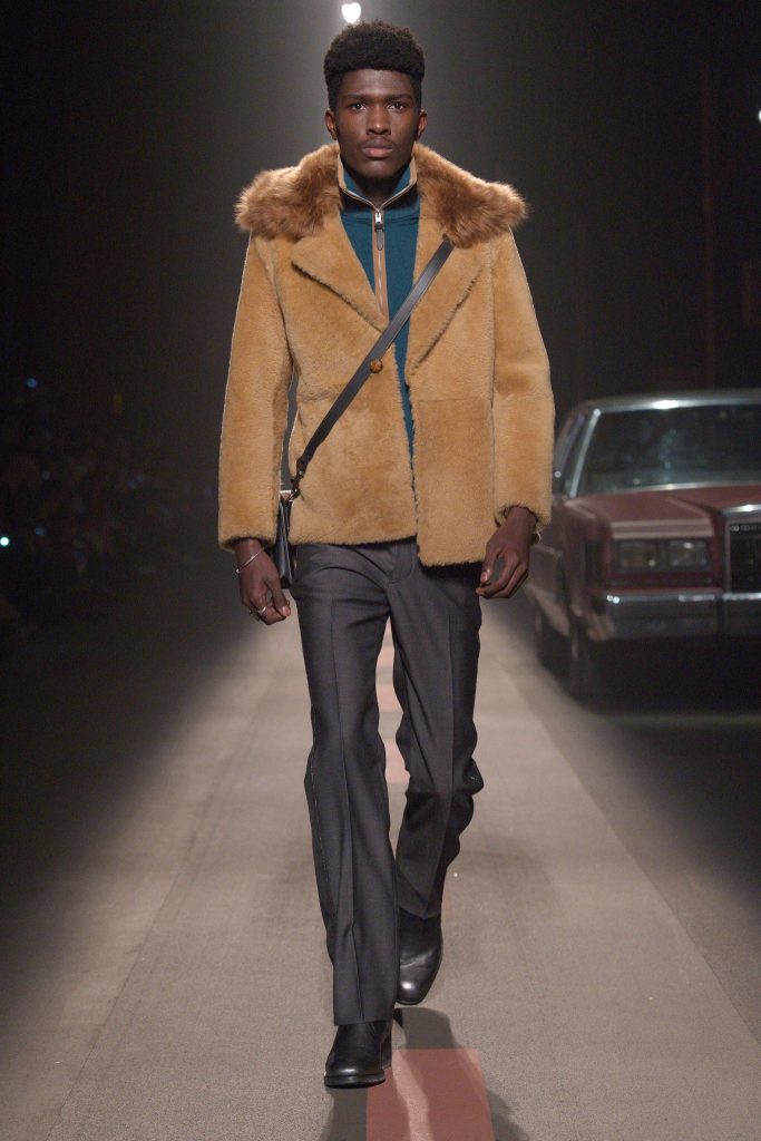 Salvatore Ferragamo: Til vinteren 2019 har det italienske luksusmerket latt seg inspirere av kunsteren Bronzino hva gjelder fargepalett. Mørkegrønn, «paprika-grønn», navy blå og duse gråtoner er dominerende. Alle farger som passer perfekt inn i «The Big Chill». Det er fokus på skreddersydd yttertøy, som kåper i houndstooth ull. For menn kommer yttertøyet i en ny og fresh lengde – korte og i «boksform». For kvinnen er det mye kåper med definert midje, men uten å miste følelsen av komfort.