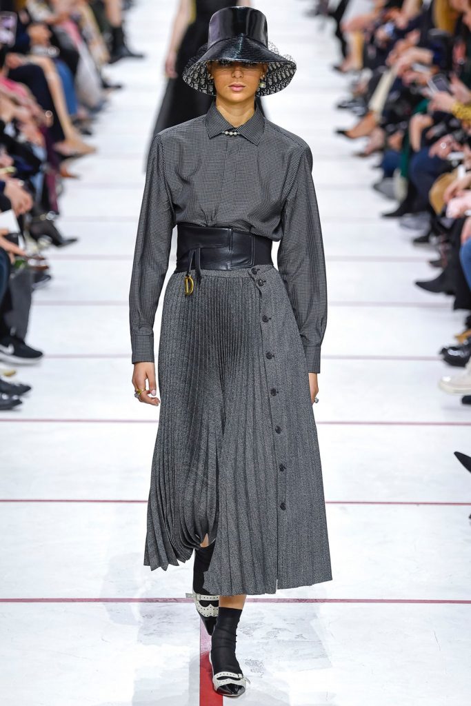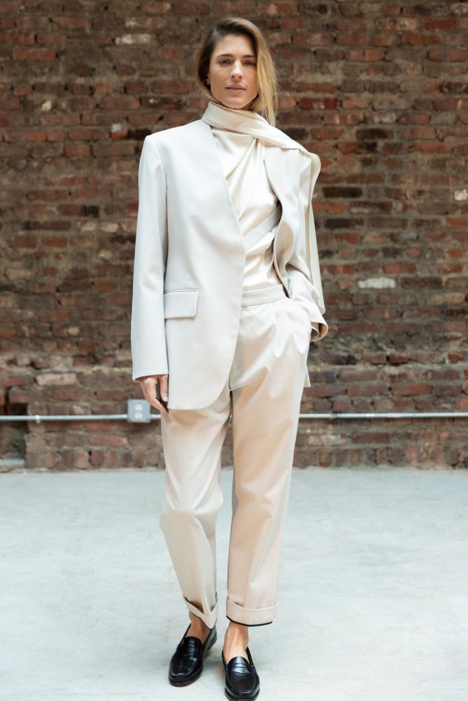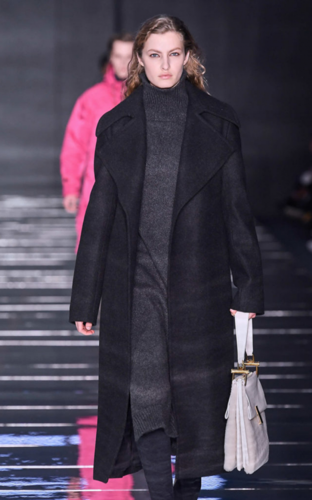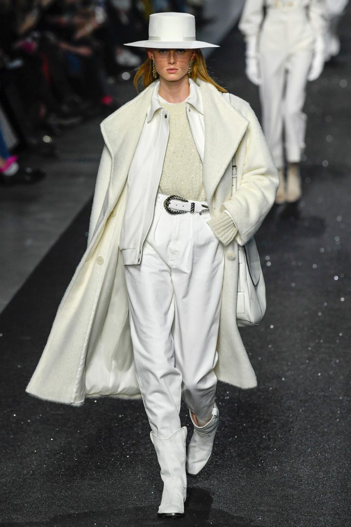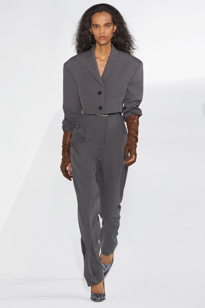 Av tilbehør til henne ser vi både maskuline sko som sorte, chunky snøreboots à la Dr. Martens, i tillegg til de populære hvite bootsene som fortsetter fra høsten 2019. Sentralt i denne tendensen vil også være lange, spisse boots i matt og særlig sort skinn. Hatter vil også fortsette fra AW19- og 20-sesongen. Den sorte, tidløse vesken vil holde stand også denne sesongen, og kommer både som små og middels store og klassiske med håndtak.