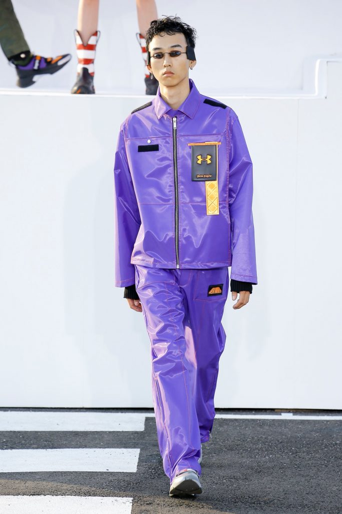 Palm Angelssin herrekolleksjon for SS19 var preget av syrelilla, neon-oransje, syrlig himmelblått og neongult. Merket viste sporty snitt kombinert med tekniske materialer.