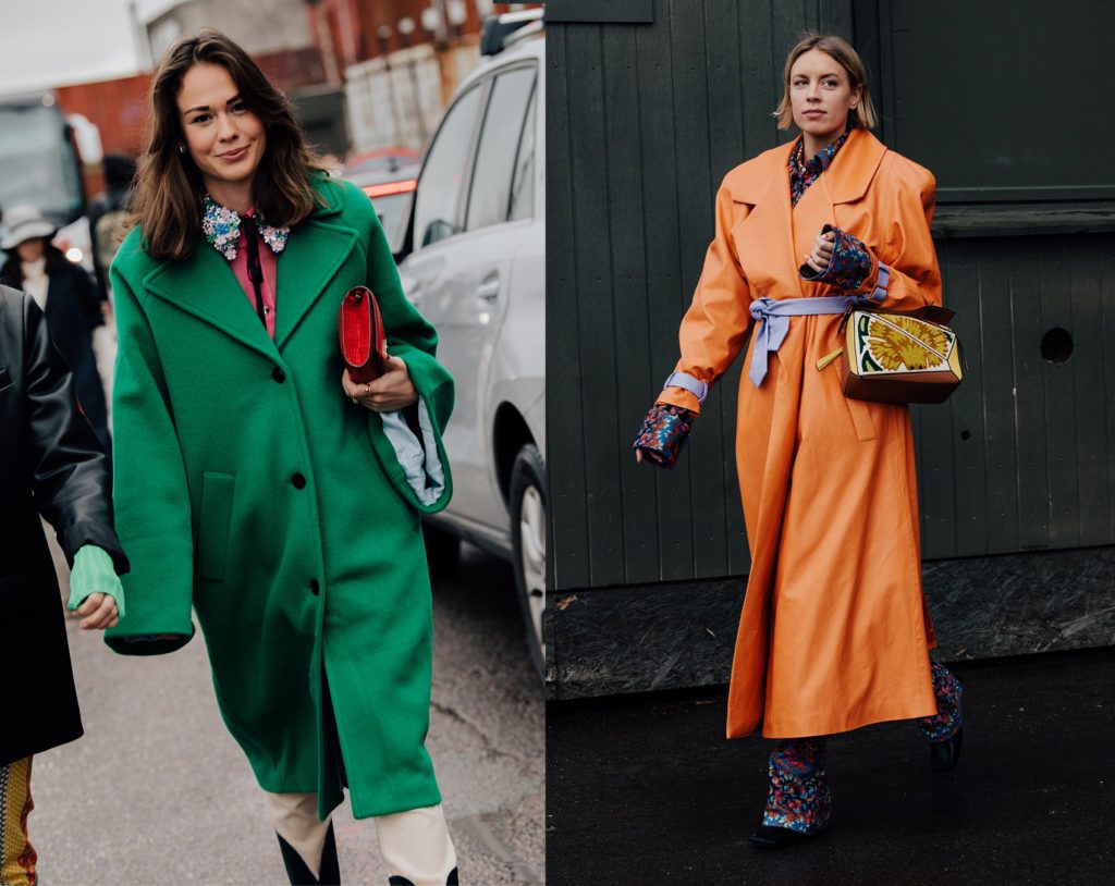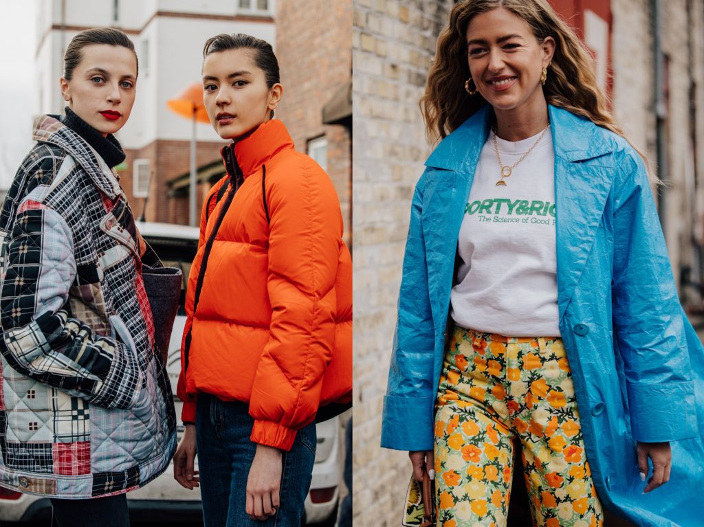 Det høres egentlig ganske så logisk ut, at man i Skandinavia med mye vær om høsten og vinteren, fokuserer på iøynefallende yttertøy. Hvorfor kle seg i kjedelige, mørke jakker når en kan gå for herlige farger og mønstre? På gaten i København brukte trendsetterne jakker med lappeteppe-teknikker, knallfarger som oransje, turkis og grønt, og lange kåper i stilige materialer som skinn og PVC.