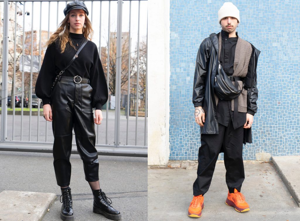 Det er ikke bare catwalken i de store motebyene som ble farget sort for 20/21-sesongen. Også gatebildet i Berlin var preget av helsorte antrekk. Da er det viktig å gå for ulike materialer med forskjellige teksturer for å gjøre det hele spennende og iøynefallende. Tenk blankt skinn mot røff eller fin strikk.